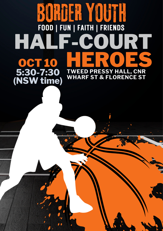 This week Border Youth is at our usual location at Tweed Presbyterian Church Hall from 5:30-7:30pm NSW Time. This week we will be playing basketball now that we have Daylight Savings.