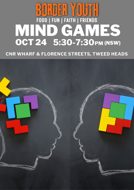 This week Border Youth is at our usual location at Tweed Presbyterian Church Hall, from 5:30-7:30pm NSW Time. This week we will be playing mind games and having Brinner (breakfast for dinner).