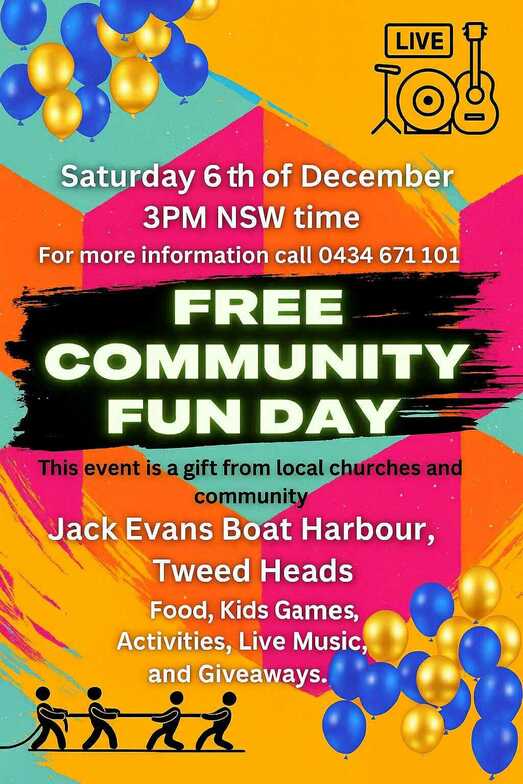 Prayer meetings are on Wednesdays at 3pm (NSW time) at 179 Botanical Circuit, Banora Point. Please message me or speak to Lorraine if you have any prayer requests we can add to our list. All are welcome to join as we pray for our community and upcoming projects.
