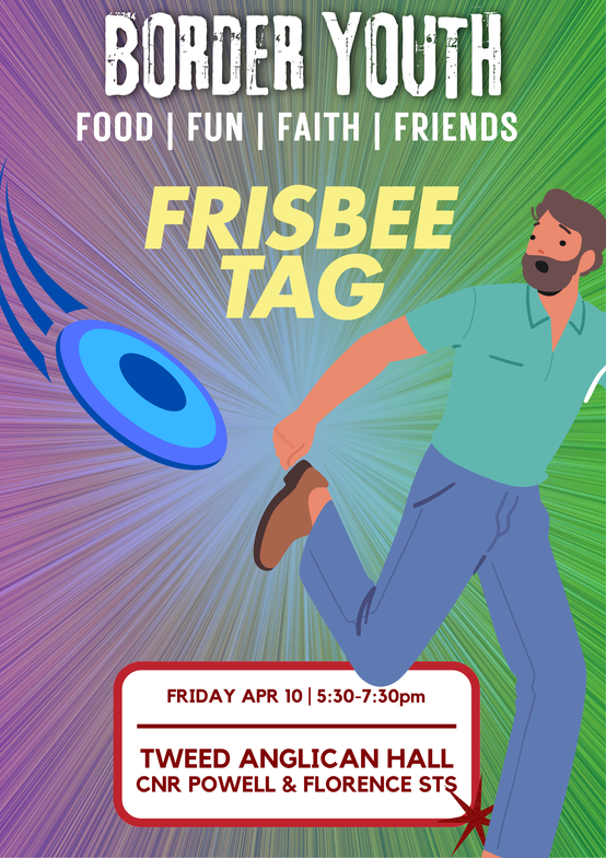 This week Border Youth is on at our new venue - Tweed Heads Anglican (St Cuthbert's), located at the corner of Florence and Powell Streets. We are having ice cream playing Frisbee Tag.
